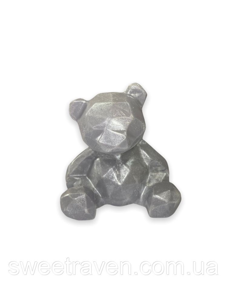 Фігурка шоколадна Ведмедик - готовий декор з ароматом шоколаду із шоколадної глазурі у вигляді стильного ведмедика срібного кольору з перламутровим покриттям.